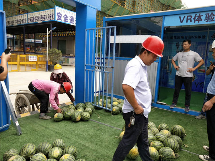 拿到西瓜、藿香正氣液等防暑降溫用品的工人們臉上都露出“喜滋滋”的笑容。除了發(fā)放防暑降溫用品,項(xiàng)目施工現(xiàn)場還積極調(diào)整作息時(shí)間,避開中午高溫時(shí)段作業(yè),有計(jì)劃、有秩序地安排施工人員高溫錯(cuò)時(shí)輪休,加強(qiáng)了一線職工高溫施工的安全防范工作,保證了足夠的休息時(shí)間,防止因高溫引發(fā)的人身傷害事故。項(xiàng)目一線工人的細(xì)致關(guān)懷,不僅營造了公司以人為本、關(guān)愛職工、注重安全的良好氛圍,也進(jìn)一步激發(fā)了項(xiàng)目員工的愛崗敬業(yè)熱情和工作積極性。