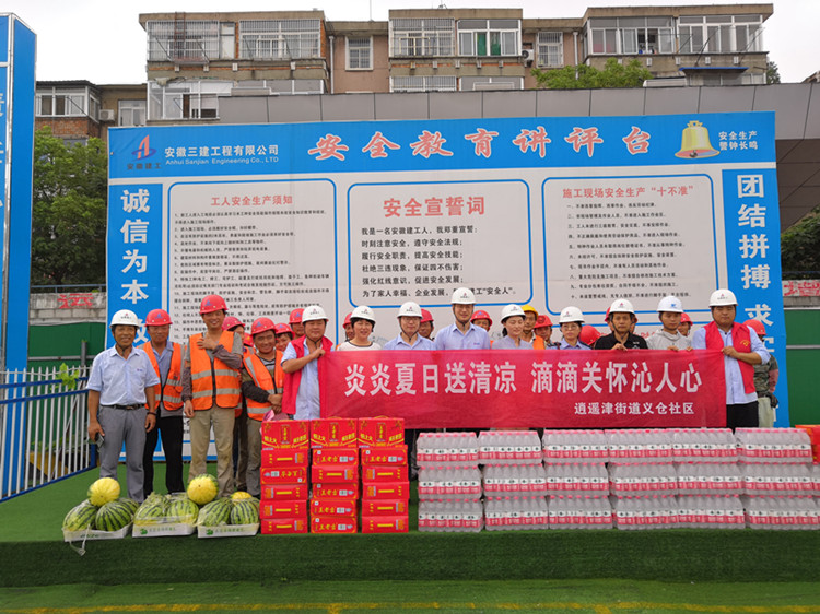 烈日炎炎,高溫酷暑,在領到防暑降溫用品后,項目施工工人員喜悅的笑容帶走了身體上的燥熱和疲憊。任鐘明表示,平時工作中,合肥三中綜合藝術樓項目能積極配合街道各項工作,為推進社區(qū)文明創(chuàng)建工作扎實有序地做出了榜樣,今后的工作中,希望項目部再接再厲,繼續(xù)支持街道各項工作。