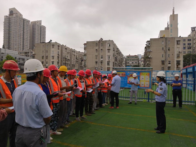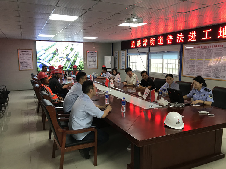 逍遙津街道前往合肥三中綜合藝術樓項目開展“高溫送清涼,普法進工地”活動