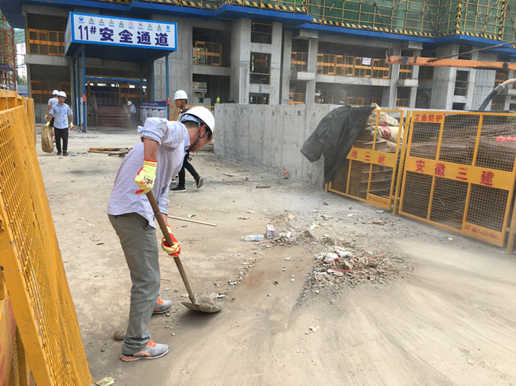 此次黨員義務(wù)勞動的主要任務(wù)是清掃項(xiàng)目部11棟與16棟樓之間等區(qū)域的的墻面、地面清掃,定型化材料整理。盡管太陽毒辣、天氣炎熱,但大家在項(xiàng)目黨支黨員的帶領(lǐng)下,全體管理人員熱情高漲,大家自動分工,相互協(xié)作,積極投身到熱火朝天的義務(wù)勞動行動中,勞動的身影在項(xiàng)目上成了一道亮麗的風(fēng)景線。