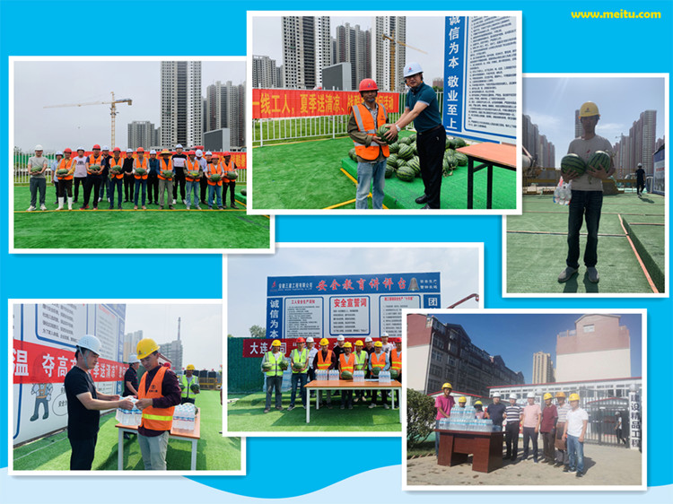 6月11日至6月15日,大連公司工會主席石業(yè)兵帶隊,先后前往煙臺陽光海岸四期、五期項目部,濟南君逸府項目部、瀾湖郡幼兒園項目部、濟陽未來城A5項目部的施工現(xiàn)場,看望慰問一線工人,向高溫下堅持工作、堅守崗位的一線職工進行慰問,并送上防暑降溫的藿香正氣液、西瓜、礦泉水等慰問品。“送清涼”活動猶如夏日里的涼風(fēng),沁潤著職工們的心田,激發(fā)了職工們的工作熱情。大家表示,一定堅守崗位、認真工作,在戰(zhàn)高溫的同時,戰(zhàn)疫情、搶工期、保目標(biāo)、促超產(chǎn),確保完成各項生產(chǎn)任務(wù)。