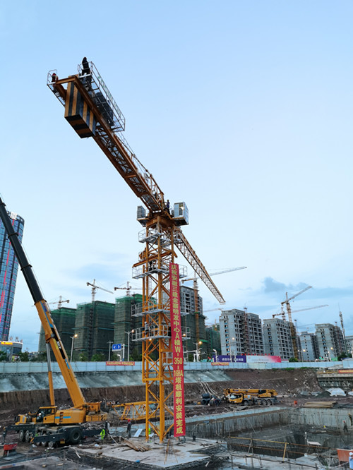 利器在手 公司最大塔機W350在金寨明發(fā)中心超高層項目順利安裝就位
