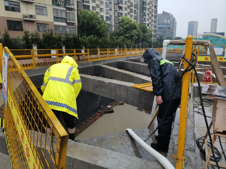 在積極參加地方防汛搶險工作的同時,六公司認(rèn)真做好在建項目的防汛和安全工作。合肥軌道交通4號線4標(biāo)段項目積極安排人員24小時值班,做好車站深基坑的排水,以及車站周邊的雨污水管道的排查,著重做好大強(qiáng)路車站兩端洞口的污水池排水工作,同時做好呈坎路車站的1號出入和2號風(fēng)亭的基坑排水工作,確保了深基坑的安全。
