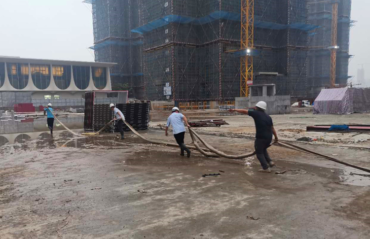 隨著天空中連綿不絕的瓢潑大雨,加之地庫本身地勢低洼,到17日晚11時(shí),南京中海項(xiàng)目4萬多平方米的地庫積水已經(jīng)深達(dá)近1米。此時(shí)頂板上和周邊的積水還在源源不斷的向地庫流淌。如果不能及時(shí)排澇,不僅會造成地庫大幅度沉降等一系列安全、質(zhì)量隱患,還會影響20號的底板澆筑,進(jìn)而拖延整個(gè)工期!